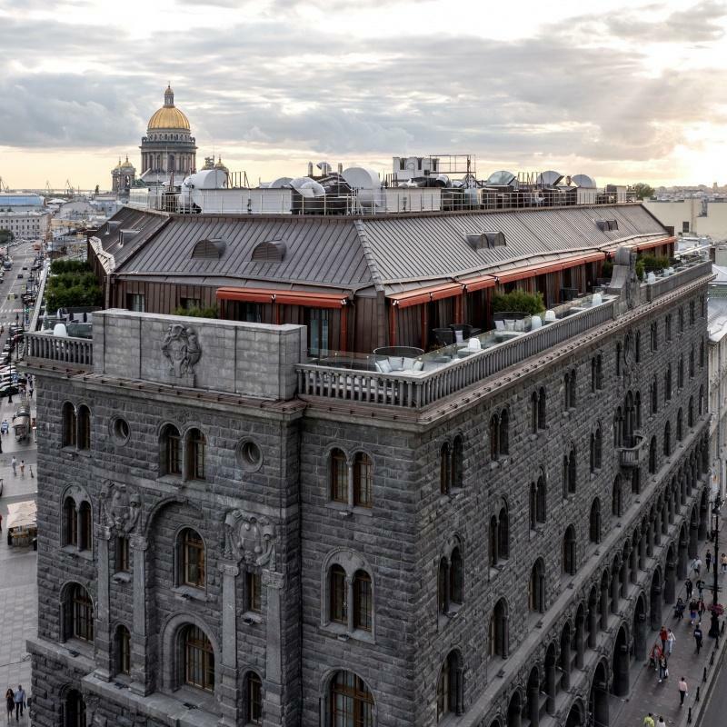 This five-star hotel is housed in one of the city's most prominent architectural buildings. Among the hotels on Nevsky Prospect in St. Petersburg, it stands out for its uniqueness. Its granite facade in the Neo-Renaissance style is one of the iconic landmarks of the city's main "artery."